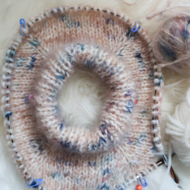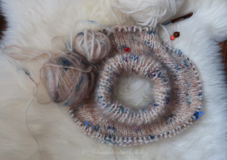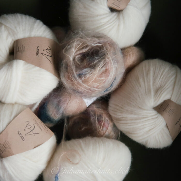 If you’re on a tight budget, here’s a trick: pair a plain-colour fat mohair with a hand-dyed wool. The textures differ slightly, and the sweater will be a touch less fluffy, but the result? Stunning. Less fluff, slightly thinner, but still chef’s-kiss luxurious.