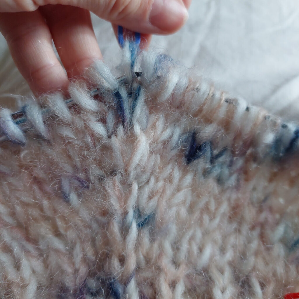 That very first full body row will feel loose and wobbly around the underarm stitches. Don’t panic — once you keep knitting, it all evens out and the looseness won’t show in the final fabric.